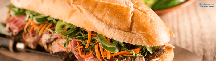 “บั๋นหมี่” เป็นแซนด์วิชเวียดนามที่ใช้ขนมปังฝรั่งเศส ใส่ไส้หมูย่าง ไก่ หรือหมูยอ พร้อมกับแตงกวา ผักชี และซอสเผ็ด