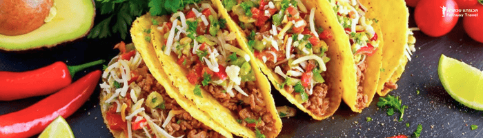 “ทาโก้” คือแป้งตอร์ตียาสอดไส้เนื้อสัตว์ต่าง ๆ โรยหน้าด้วยหอมซอย ผักชี และซอสเผ็ด เป็นสตรีทฟู้ดอันดับต้น ๆ ของเม็กซิโก