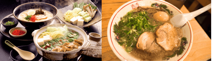 มาเริ่มกันที่ ของกินฟุกุโอกะ เมนูฮิตอย่าง ฮากาตะราเมน เป็นเมนูขึ้นชื่อของเมือง และยังเป็นราเมนที่มีชื่อเสียงมากที่สุดในญี่ปุ่น จุดเด่นคือเส้นราเมนที่เล็กเรียว และน้ำซุปทงคตสึสีขาวขุ่น ที่เกิดจากการนำกระดูกหมูไปเคี่ยวอย่างพิถีพิถันเป็นเวลาหลายชั่วโมง ทำให้รสชาติเข้มข้น หอมมัน เสิร์ฟพร้อมเนื้อชาชูชิ้นใหญ่ งาขาว ต้นหอม และขิงดองที่ช่วยแก้เลี่ยน คนญี่ปุ่นเชื่อกันว่าคอลลาเจนในซุปมีส่วนช่วยเพิ่มความยืดหยุ่นให้ผิว และต่อต้านริ้วรอยได้ด้วยนะ ใครอยากลิ้มลองราเมนจากร้านต้นตำรับต้องที่ร้าน Ippudo เลย