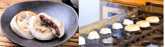 ถ้ามา เที่ยวฟุกุโอกะ แถวศาลเจ้าดาไซฟุ เทนมันกุ (Dazaifu Tenmangu Shrine) ต้องไม่พลาดเมนู โมจิย่างไส้ถั่วแดง แถวนี้มีขายหลายร้าน ทำกันสดๆ เสิร์ฟให้ทานตอนอุ่นๆ ด้านนอกทำมาจากแป้งข้าวเหนียว สอดไส้ด้วยถั่วแดงบดละเอียด รสชาติไม่หวานมาก ความพิเศษอยู่ที่เขาจะนำไปย่างให้ด้านนอกเป็นสีเหลืองทอง ทั้งหอมและกรอบนอกนุ่มใน เพิ่มความน่าทานด้วยการประทับตราดอกซากุระไว้ด้านบน โดยนอกจากร้านค้าบริเวณศาลเจ้าแล้ว ยังหาซื้อได้ง่ายตามสนามบิน สถานีรถไฟ และร้านค้าทั่วไปอีกด้วย เป็นเมนูที่เหมาะแก่การซื้อไปเป็นของฝาก ก่อนทานก็นำมาอุ่นให้ร้อน อร่อยเหมือนอยู่ฟุกุโอกะเลย
