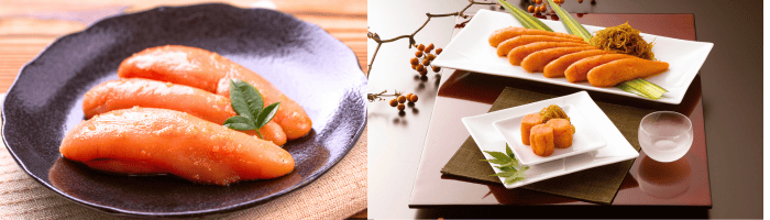 เมนไทโกะ เป็นไข่ปลาคอดที่อร่อยที่สุดในเมืองฟุกุโอกะ หรือชื่อในภาษาญี่ปุ่นคือ ปลาทาระ ลักษณะเป็นไข่ปลาเม็ดเล็กๆ สีส้ม ติดกันเป็นก้อน มักนำไปหมักกับพริก และเครื่องเทศอื่นๆ รสชาติจะออกเค็มๆ เผ็ดๆ เรียกว่า คาราชิเมนไทโกะ (Karashi mentaiko) กินแบบดิบหรือนำไปย่างก็ได้ สมัยก่อนนิยมกินกับข้าว แต่ปัจจุบันมีการนำเมนไทโกะไปปรุงเป็นเมนูที่หลากหลายมากขึ้น เช่น พาสต้า, พิซซ่า, ซุป, ซูชิ หรือแม้แต่เมนูขนมต่างๆ ก็ยังทำรสเมนไทโกะออกมาขายด้วย สามารถหาทานได้ง่ายตามร้านอาหารและอิซากายะทั่วเมือง