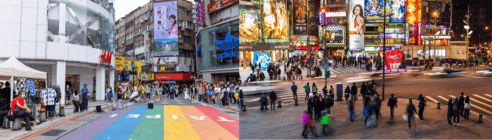 ย่านซีเหมินติง ในกรุงไทเป ที่นี่เป็นย่านช้อปปิ้งขนาดใหญ่ที่มีชื่อเสียงที่สุดในไต้หวัน เป็นแหล่งรวมแบรนด์ชื่อดัง ร้านค้าท้องถิ่น และร้านอาหารอร่อยๆมากมาย สามารถมาเดินเล่นช้อปปิ้งได้ตลอดทั้งวัน ยิ่งในตอนกลางคืนบรรยากาศก็จะคึกคักเป็นพิเศษ มีของให้เลือกช้อปเยอะมาก