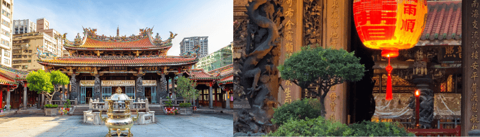 วัดหลงซาน อีกหนึ่งพิกัดที่เที่ยวไต้หวันที่ไม่ควรพลาดเลยค่ะ เป็นวัดที่เก่าแก่และมีชื่อเสียงมากที่สุดในไทเปประเทศไต้หวัน มีอายุกว่า 300 ปี ตั้งอยู่ในตัวเมืองไทเป เดินทางสะดวกด้วยรถไฟฟ้าใต้ดิน โดยสิ่งที่ผู้คนนิยมมาขอพรมากที่สุดคือ เทพเฒ่าจันทรา เชื่อว่าเป็นเทพเจ้าผูกด้ายแดงให้สมหวังในความรักนั้นเอง นอกจากนี้ผู้คนยังนิยมขอพรเรื่องความแคล้วคลาดปลอดภัย มีความสุขในชีวิตครอบครัวอีกด้วย