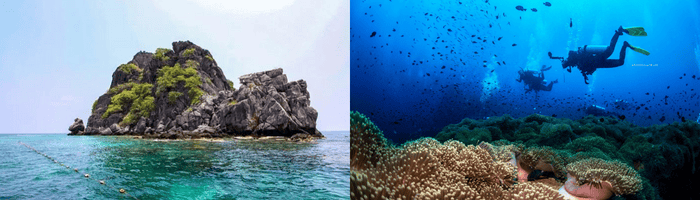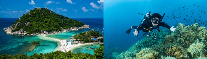 เกาะเต่า ถือว่าเป็นเกาะสวรรค์ของคนรักการดำน้ำ🏊♀️ เพราะเกาะแห่งนี้เป็นเกาะในไทยที่มีแหล่งดำน้ำที่โด่งดังติดอันดับโลก ตั้งอยู่ในอำเภอเกาะพะงัน จังหวัดสุราษฎร์ธานี เนื่องจากเกาะเต่าอยู่ห่างจากแผ่นดินใหญ่และห่างไกลผู้คน ทำให้มีธรรมชาติใต้ท้องทะเลที่อุดมสมบูรณ์นั่นเองค่ะ จึงมีสัตว์ทะเลหลากหลายสายพันธุ์มาทักทายนักท่องเที่ยว เช่น ปลานกแก้ว ปลาวัว ปลาเทวดา หรือสัตว์หายากอย่างฉลามครีบดำและเต่าทะเล เป็นต้น บนเกาะเต่าจะมีจุดดำน้ำมากกว่า 20 จุดกระจายอยู่รอบเกาะ นักท่องเที่ยวสามารถดำน้ำตื้นชมปะการังได้รอบเกาะ ซึ่งจุดที่ไม่ควรพลาด ได้แก่ อ่าวม่วง อ่าวลึก อ่าวโตนด และอ่าวหินวง เนื่องจากเป็นจุดที่มีปะการังอุดมสมบูรณ์ 🪸 และมีฝูงปลาน้อยใหญ่มากมาย 🐡 ส่วนจุดดำน้ำลึกที่แนะนำ ได้แก่ จุดดำน้ำหินใบ กองตุ้งกู กองชุมพร กงทรายแดง และกองหินวง เป็นต้น เกาะเต่าเป็นเกาะในไทยที่สามารถดำน้ำได้ตลอดทั้งปี และยังเป็นจุดที่เหมาะสำหรับการเรียนดำน้ำลึกหรือฟรีไดฟ์อีกด้วยค่ะ 🚤