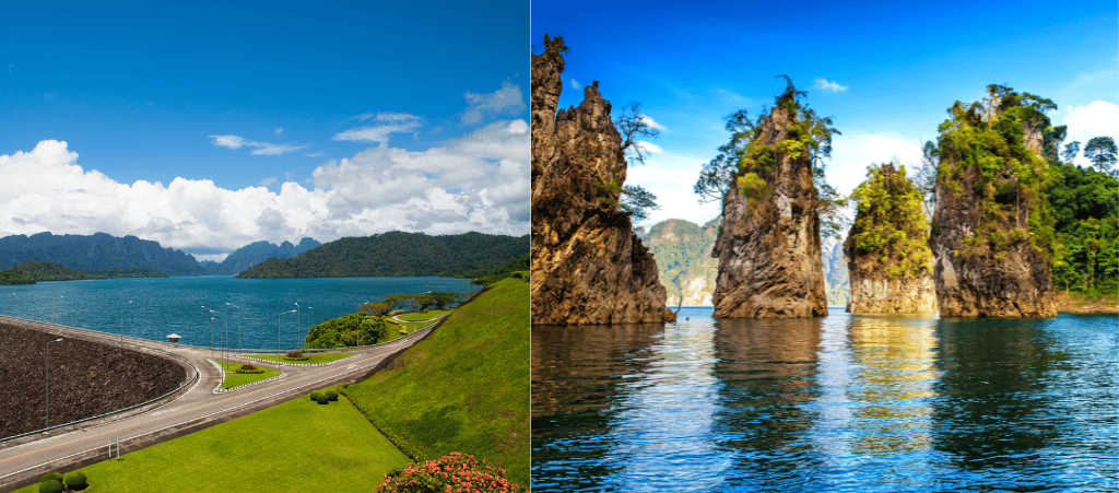 1. เขื่อนรัชชประภา – จังหวัดสุราษฎร์ธานี 🚞