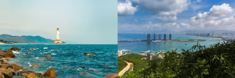ซานย่า ตั้งอยู่ในมณฑลไห่หนาน หรือที่คนไทยเรียกติดปากว่า ไหหลำ เป็นเมืองพักตากอากาศอันดับต้นๆของประเทศจีน ซึ่งซานย่าได้รับฉายาว่า “ไข่มุกแห่งทะเลจีนใต้” ซานย่ามีสถานที่น่าสนใจมากมาย ยกตัวอย่างเช่น อ่าวย่าหลง อ่าวไห่ถัง และวัดหนานซาน สถานที่ประดิษฐานเจ้าแม่กวนอินสีขาวขนาดใหญ่ เชื่อว่ามีความศักดิ์สิทธิ์ และเป็นที่เคารพนับถือของชาวซานย่าเป็นอย่างมาก และซานย่ายังเป็นเมืองที่ขึ้นชื่อเรื่องของอาหารทะเลที่มีความสดใสและหลากหลาย ใครที่เป็นสายซีฟู้ดต้องห้ามพลาดเลย