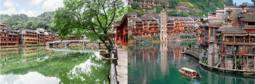เมืองโบราณที่ตั้งอยู่ใน เขตปกครองตนเองเซียงซี ชนชาติถู่เจียและชนชาติเหมียว มณฑลหูหนาน สร้างขึ้นในสมัยราชวงศ์ชิง ปัจจุบันแบ่งออกเป็น 2 ส่วน คือ เขตเมืองโบราณและเขตเมืองใหม่ โดยมี สะพานหงเฉียว สะพานเก่าแก่เชื่อมทั้งสองฝั่งเมืองเอาไว้ ด้วยสถาปัตยกรรมอันงดงามที่ยังคงอนุรักษ์เอกลักษณ์เดิมเอาไว้ จึงทำให้เมืองเฟิ่งหวงได้รับการขึ้นทะเบียนเป็นมรดกโลกโดย UNESCO และยังได้ชื่อว่าเป็นเวนิสเมืองจีนด้วย