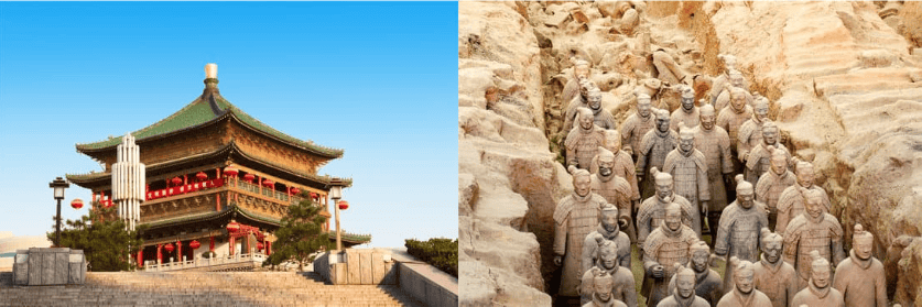 ซีอานเป็นเมืองแห่งประวัติศาสตร์ที่มีชื่อเสียงอันดับต้นๆของโลก มีประวัติศาสตร์อายุกว่า 3,100 ปี ตั้งอยู่ทางภาคตะวันตกเฉียงเหนือของจีน ในอดีตเคยเป็นเมืองหลวงของราชวงศ์ต่างๆมากมาย ภายในเมืองมีสิ่งก่อสร้างต่างๆ ไม่ว่าจะเป็น กำแพงเมืองซีอาน ที่สร้างขึ้นในสมัยราชวงศ์หมิง นอกจากนี้ยังมี สุสานจิ๋นซีฮ่องเต้ อายุกว่า 2,000 ปี ที่มีรูปปั้นทหารดินเผา เครื่องสรรพวุธ รถม้า และม้าศึกกว่า 7,400 ชิ้น ซึ่งเป็นหนึ่งในแหล่งโบราณคดีที่มีความสำคัญมากที่สุดของประเทศจีนเช่นเดียวกัน