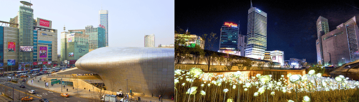 Dondaemun Design Plaza หรือ DDP🏢⛅❕ เป็นกลุ่มอาคารรูปทรงแปลกใจกลางกรุงโซล ตั้งอยู่กลางศูนย์รวมแฟชั่นของเมือง ดงแดมุน โดยเป็นพื้นที่จัดนิทรรศการระดับโลกมากมาย🤩 มีทั้งห้องประชุม พื้นที่ในส่วนของการจัดงานแสดงแสดงโชว์สินค้าต่างๆ🛍️(✧∀✧) และยังเป็นสถานที่สำคัญสำหรับการแลกเปลี่ยนวัฒนธรรมระหว่างประเทศ และถ้าหากใครเคยดูซีรีส์เกาหลียอดฮิตอย่าง You Who came From the star (ยัยตัวร้ายกับนายต่างดาว👽👩❤️) คงจะพอคุ้นตากับสถานที่แห่งนี้🍃🌼🌈 เพราะเขาได้มาถ่ายทำฉากใน ซีรีย์ในที่แห่งนี้กันหลายฉากมาก หรือจะเป็นเพลง Come Back Home ของศิลปินเกาหลี วง 2NE1 ก็มาถ่ายทำ MV ที่แห่งนี้เช่นกัน ≧ ▽ ≦) / 💖💖💖💖