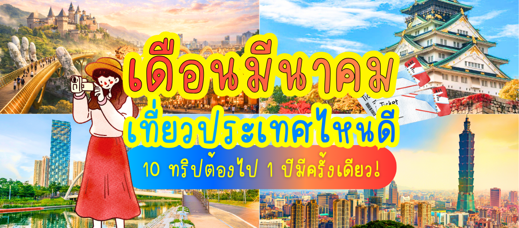 เตรียมแพ็คกระเป๋า แล้วไปตะลอนต่างประเทศกับฟ้าสวยกันเลย ✈️💙 มาดูกันว่าเดือนมีนาคมนี้จะมีประเทศไหนน่าเที่ยว หรือมีเทศกาลอะไรห้ามพลาดบ้าง 👀✨ปักหมุดไว้ แล้วรีบจองก่อนเต็มนะคะ 😉💌