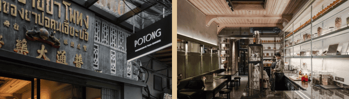 อดีตร้านขายยาจีนยี่ห้อ ‘ปอคุนเอี๊ยะป้อ’ ของต้นตระกูลชาวจีนฮกเกี้ยนในตึก 5 ชั้น สไตล์ชิโน-ยูโรเปียน เมื่อผลัดใบสู่ทายาทรุ่นที่ 5 อย่าง เชฟแพม-พิชญา อุทารธรรม ซึ่งใฝ่ฝันอยากเปิดร้านอาหารของตัวเองตั้งแต่เด็ก ร้านขายยาสมัยคุณเทียด (ปู่ของปู่) จึงได้รับการขัดสีฉวีวรรณใหม่ เป็น Fine Dining Restaurant กลางซอยสำเพ็ง อาหารฝีมือเชฟแพมไม่ใช่ทั้งอาหารจีนแบบที่หารับประทานได้ในเมืองจีน และก็ไม่ใช่อาหารไทยในเมืองไทย แต่เป็นอาหารไทยปนจีนของชาวจีนโพ้นทะเลที่ถูกนำมาตีความใหม่และผสานกับความรู้สมัยใหม่ของเชฟแพม เพื่อสื่อถึงตัวตนของเชฟซึ่งเป็นคนไทยเชื้อสายจีน “คอนเซ็ปต์หลักของ ‘โพทง’ คือกาลเวลา อยากให้ลูกค้าสร้างความทรงจำที่นี่ ไม่ว่าจะตึกเก่าปนใหม่ ไปจนถึงมื้ออาหารที่มีกาลเวลาเป็นแม่ครัว โดยวัตถุดิบและเครื่องปรุงที่นี่ทำเองแทบทั้งหมด” ต่อ-บุญปิติ สุนทรญาณกิจ คู่ชีวิตของเชฟแพมกล่าวถึงแนวคิดที่อยู่เบื้องหลังร้านของเขากับภรรยา