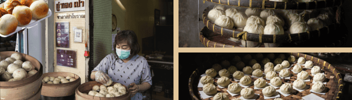 นานกว่าร้อยปีแล้วที่ครัวร้าน ‘เตียท่งเซ้ง’ หรือ ‘กู่หลงเปา’ ตั้งมั่นอยู่ในทรงวาดตลอดเวลาที่ผ่านมา ร้านซาลาเปาแต้จิ๋วที่มีกรรมวิธีทำมือแบบโบราณแห่งนี้ได้เปลี่ยนมือเจ้าของจากรุ่นสู่รุ่น จนกระทั่งมาถึงรุ่นที่ 5 อย่าง นัท ที่ดูแลร้านร่วมกับอากู๋ (ลุง) มือปั้นซาลาเปาผู้ช่ำชองด้วยมันสมองและสองมือของหนุ่มอนาคตไกล นัทได้ปรับปรุงแบรนดิ้งของร้านกู่หลงเปาให้ทันสมัยยิ่งขึ้น เช่น ทำช่องทางติดต่อออนไลน์ ออกแบบสินค้าใหม่ ๆ อย่างซาลาเปาอบ คิดค้นแพ็กเกจจิ้งที่ช่วยให้ซาลาเปาของร้านส่งไปขายไกลถึงเชียงใหม่หรือหาดใหญ่ได้ กระทั่งชื่อแบรนด์ใหม่ว่า ‘กู่หลงเปา’ เขาก็เป็นคนต้นคิด ขณะเดียวกันก็ไม่ลดทอนคุณค่าทางกาลเวลาของร้าน