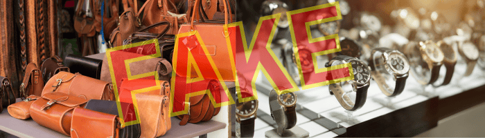 สินค้าละเมิดลิขสิทธิ์ ไม่ว่าจะเป็นรองเท้า กระเป๋า นาฬิกา เสื้อผ้า เครื่องประดับ ถือเป็น ของที่ห้ามเอาขึ้นเครื่องบิน เพราะสินค้าเหล่านี้เป็นการนำผลงานของผู้อื่นมาทำซ้ำ ดัดแปลง เผยแพร่ และหาผลประโยชน์โดยที่เจ้าของผลงานไม่ได้อนุญาต รวมทั้งหลายประเทศยังมีกฎหมายคุ้มครองการละเมิดลิขสิทธิ์อีกด้วย