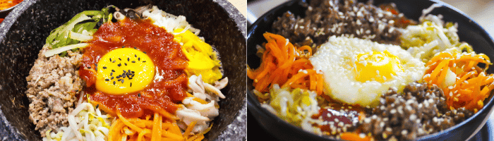 บิบิมบับ อาหารที่ผสมผสานระหว่างข้าว ผัก เนื้อวัวปรุงสุก และไข่ดาว รวมถึงการใส่ซอสโคชูจัง กับพริกแดงรสเผ็ด และมีความหวานเล็กน้อย ทำการใส่ถ้วยที่มีฝาปิดและขั้นตอนที่สนุกที่สุดคือ การเขย่าให้ข้าวและส่วนผสมต่าง ๆ คลุกเข้าด้วยกัน เป็นเมนูฮิตอีกหนึ่งเมนูที่น่าไปลองชิมต้นตำหรับที่ประเทศเกาหลี
