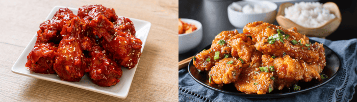 ไก่ทอดเกาหลี เป็นอาหารยอดนิยม มีสไตล์และรสชาติเฉพาะตัว แตกต่างจากประเภทอื่น โดยไก่ทอดเกาหลีจะขึ้นชื่อเรื่องเนื้อสัมผัสที่กรอบนอกนุ่มใน และปรุงรสที่หลากหลาย เช่น กระเทียมถั่วเหลือง รสเผ็ด และฮันนี่มัสตาร์ด มักเสิร์ฟกับ หัวไชเท้าดองกับโคลสลอว์ มีหลากหลายรถชาติให้เลือกทำให้น่าใจ