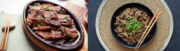 บุลโกกิ เป็นเนื้อสไลด์บาง ๆ นำมาย่างให้หอม ซึ่งจะเสิร์ฟพร้อมใบผัดกาดหอม ผักสดและเห็ด โดยจะใช้ใบผัดกาดหอมสำหรับห่อกับเนื้องสไลด์ บุลโกกิสามารถเปลี่ยนเนื้อสัตว์ได้ ไม่ว่าจะเป็นไก่หรือจะเป็นหมู แม้กระทั่งคนที่กินมังสวิรัติก็สามารถใช้เห็ดแทนได้