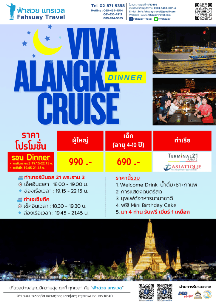 ⭐สำหรับใครที่กำลังมองหาสถานที่นั่งดินเนอร์ บรรยากาศดีๆ ล่ะก็ ครั้งนี้ทุกคนจะได้ฟินอย่างแน่นอนค่ะ เพราะเราจะพาทุกคนไปอิ่มอร่อย กับ 🛳️การล่องเรือแม่น้ำเจ้าพระยาบนเรือสำราญหรู ชมวิวแม่น้ำเจ้าพระยา พร้อมทานบุฟเฟ่ต์ฟินๆ🦞🥂🍽️ ไปกินลมชมวิวกรุงเทพ ในยามค่ำคืน 2 ฝั่งของแม่น้ำเจ้าพระยา พร้อมกับมื้ออาหารสุดพิเศษที่จัดเต็มทั้งบุฟเฟ่ต์อาหารไทย นานาชาติ อาหารทะเล รับรองว่าประทับใจในทุกๆ โอกาสแน่นอนค่ะ จะมีพิกัดไหนน่าตามรอยบ้าง ตามเราไปดูกันเลยค่า❗