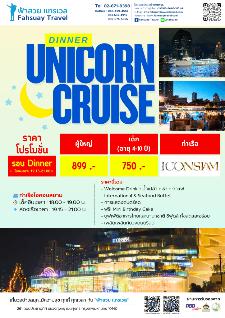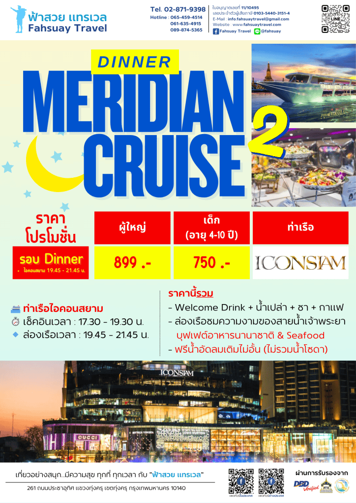 ล่องเรือเจ้าพระยา ดินเนอร์บุฟเฟ่ต์ ชมวิวกรุงเทพ