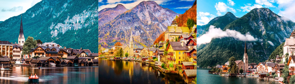 หมู่บ้านเล็ก ๆ ริมทะเลสาบ โอบล้อมด้วยภูเขา บ้านไม้สีพาสเทลเรียงรายสวยเหมือนฉากในนิทาน ไม่ว่าจะหน้าร้อนหรือหน้าหนาวก็โรแมนติกมาก 🏔️
