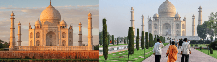 ทัชมาฮาล ตั้งอยู่ในสวนริมฝั่งแม่น้ำยมุนา ใน เมืองอัครา ส่วนที่มีชื่อเสียงที่สุด คือ หลุมศพของพระนางมุมตัซ มาฮาล ซึ่งถูกสร้างด้วยหินอ่อนสีขาว ศิลาแลง ประดับลวดลายเครื่องเพชร พลอย หิน โมราและเครื่องประดับจากมิตรประเทศ ได้รับคำรับรองว่าสร้างขึ้นด้วยสัดส่วนที่วิจิตรและงดงามที่สุด รวมถึงยังได้รับการยกย่องว่าเป็นตัวอย่างชั้นเลิศของสถาปัตยกรรมมุฆัลในอินเดีย ที่นี่ต้องใช้แรงงานในการก่อสร้างถึง 20,000 คน และใช้เวลาก่อสร้างถึง 20 ปี สุสานหินอ่อน ทัชมาฮาล (Taj Mahal) แห่งนี้ ผู้คนเชื่อว่าเป็นสถาปัตยกรรมแห่งความรักที่สวยที่สุดในโลกที่สร้างขึ้นโดยสมเด็จพระจักรพรรดิแห่งจักรวรรดิโมกุล ผู้มีรักมั่นคงต่อพระมเหสีของพระองค์ค่ะ