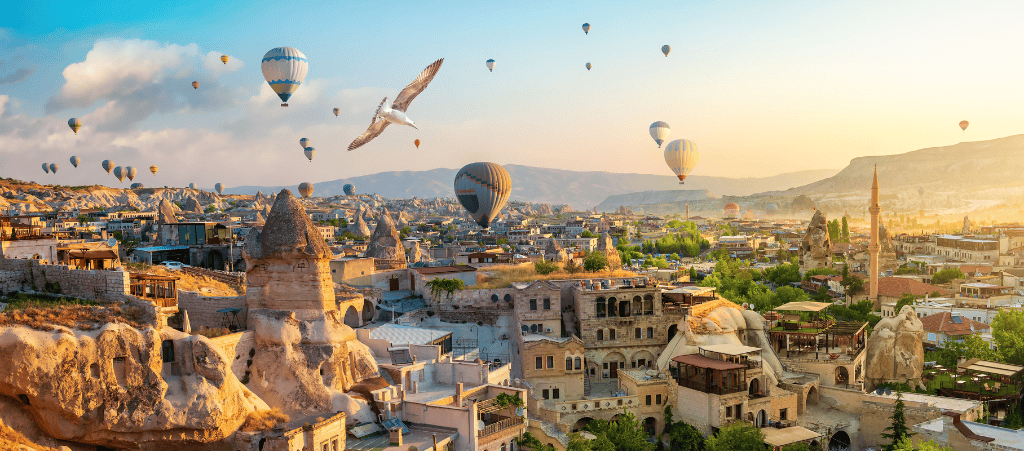 2.คัปปาโดเกีย เป็นสถานที่ล่องบอลลูนลมร้อนที่มีชื่อเสียงและได้รับการโหวตให้เป็นการล่องบอลลูนลมร้อนที่ดีที่สุดในโลกมาอย่างต่อเนื่อง การล่องบอลลูนเหนือเมืองคัปปาโดเซียนักท่องเที่ยวจะได้ชมทัศนียภาพอันสวยงามและน่าอัศจรรย์ของ “ดินแดนแหล่งปล่องไฟนางฟ้า” จากมุมสูง หากมาเที่ยวตุรกีแล้วพลาดการล่องบอลลูนก็คงจะเปรียบได้ว่ามาไม่ถึงตุรกี