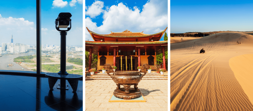 สถานที่ท่องเที่ยวได้แก่ สวนดอกไฮเดรนเยีย , เครซี่เฮ้าส์ , วัดตั๊กลัม , โบสถ์นอร์ทเทรอดาม , โบสถ์ทันดินห์ พิพิธภัณฑ์ศิลปะโฮจีมินห์ , จุดชมวิว Saigon Skydeck อาคารไบเท็กโค , ทะเลทรายมุยเน่ เป็นต้น