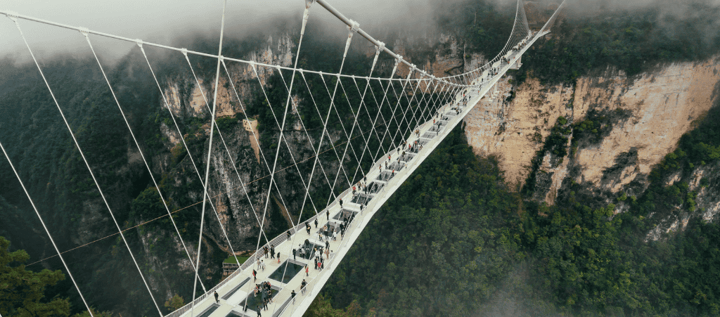 เมืองที่พลาดไม่ได้สำหรับคนที่ชอบท่องเที่ยวผจญภัยกลางแจ้ง หรือชอบเที่ยวชมธรมชาติ ต้องห้ามพลาดที่นี่เลย เพราะจางเจียเจี้ยเป็นแหล่งท่องเที่ยวทางธรรมชาติที่สมบูรณ์ที่สุดแห่งหนึ่งในโลก ไม่ว่าจะเป็นป่าไม้ที่มีอายุหลายร้อยปี ถ้ำหินงอกหินย้อย สระน้ำขนาดมหึมา น้ำตก ภูเขา ที่สวยงามมากมาย และไฮไลท์หลักๆของที่นี่ก็คือ สะพานกระจกที่ยาวและสูงที่สุดในโลก สามารถเดินข้ามสะพานและชมวิวที่อยู่ใต้เท้าของท่านได้ (แต่ไม่แนะนำสำหรับท่านใดที่กลัวความสูงนะคะ)