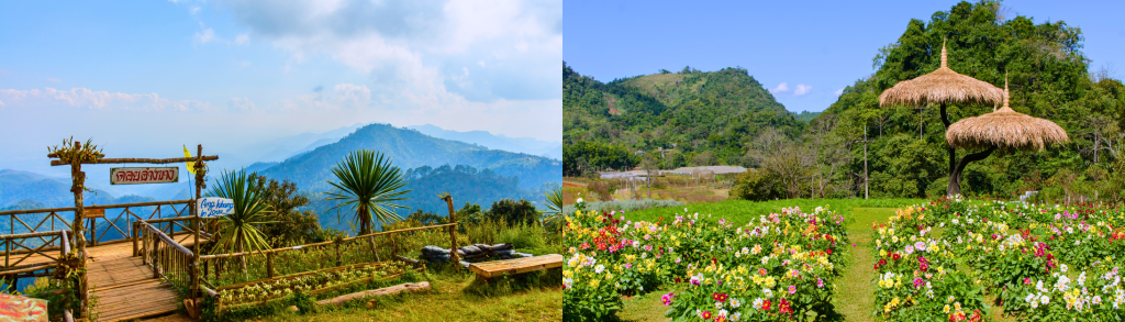 สวนดอกไม้และไร่สตรอว์เบอร์รีบนภูเขาที่มีอากาศเย็นสบายตลอดปี ในช่วงปลายปีมีแปลงดอกไม้สวยและต้นสนปกคลุมหมอกหนา เหมาะกับการถ่ายภาพมุมสูง วิวภูเขา และฟีลโรแมนติกแบบยุโรปเล็ก ๆ