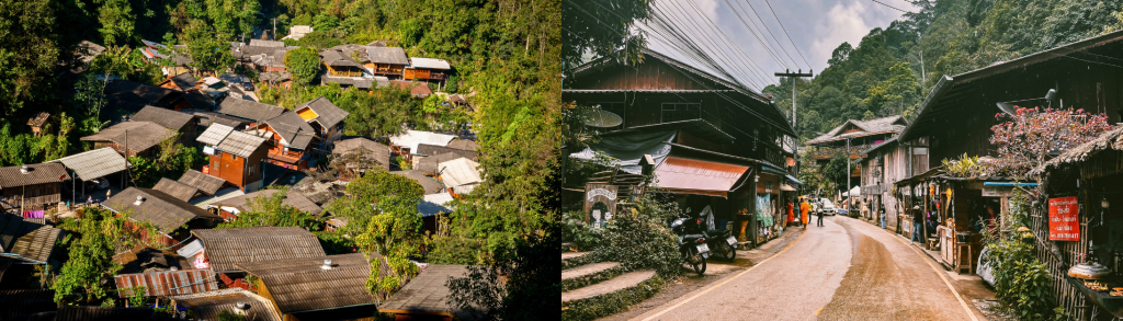 หมู่บ้านกลางหุบเขาที่ล้อมรอบด้วยต้นไม้และสายหมอกยามเช้า คาเฟ่ไม้เก่าและร้านอาหารเล็ก ๆ ประดับไฟระยิบระยับช่วงคริสต์มาส การเดินเล่นตามซอยเล็ก ๆ จะได้เห็นบ้านไม้สไตล์ล้านนาที่อบอุ่น เป็นจุดเช็กอินที่เหมาะกับคู่รักและผู้ชอบถ่ายภาพวิวธรรมชาติ