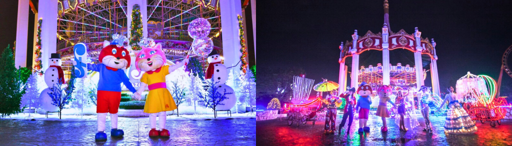จัดงาน Christmas Wonderland พร้อมแสงไฟและกิจกรรมมากมาย ทั้งสวนสนุก เครื่องเล่นสำหรับครอบครัว และมุมถ่ายรูปที่ประดับด้วยไฟหลากสี เหมาะสำหรับวันคริสต์มาสที่สนุกสนานทั้งเด็กและผู้ใหญ่