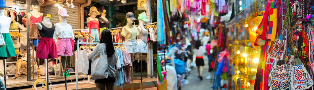 แม้จะเป็นตลาดขนาดใหญ่ แต่ก็ยังสามารถไปเดินเล่นเลือกซื้อของงานฝีมือ ของตกแต่งบ้าน หรือเสื้อผ้าสีสุภาพได้