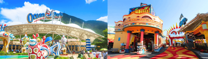 โอเชี่ยนปาร์ค สวนสนุกกลางแจ้งขนาดใหญ่ที่สุดในฮ่องกง รวมเครื่องเล่นเอาไว้มากมาย นอกจากเครื่องเล่นแล้วก็ยังมีสวนสัตว์และอควาเรียมที่จัดแสดงสัตว์น้ำสายพันธุ์ต่างๆ ส่วนใครอยากชมวิวสวยๆ ต้องไปขึ้น Cable Car พาไปยังจุดชมวิว และล่าสุดทางโอเชี่ยนปาร์คก็ได้ปรับปรุงพื้นที่บางส่วนให้กลายเป็นสวนน้ำ Ocean Park’s Water World ที่มาพร้อมกับ โรงแรม Fullerton Ocean Park ใครเป็นสายรักสนุก ตื่นเต้น ชอบความหวาดเสียว ต้องมาที่นี่เลย