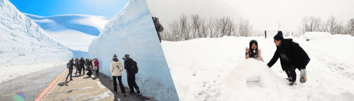โดยปกติการ ทัวร์กำแพงหิมะ ญี่ปุ่น จะเปิดให้เข้าชม ประมาณกลางเดือนเมษายน-ปลายเดือนมิถุนายนของทุกปี และหลังจากนั้นกำแพงหิมะจะค่อยๆ ละลายลดระดับความสูงลง แต่จะยังคงมีให้เห็นไปจนถึงกรกฏาคมหรือสิงหาคมเลยค่ะ ในช่วงที่มีกำแพงหิมะอากาศจะหนาวมาก แต่ถ้าอยากไปช่วงที่ไม่หนาวจนเกินไป แนะนำ เดือนมิถุนายน ที่อยู่ในช่วงหน้าร้อนแล้ว แต่บนภูเขาอากาศยังเย็นสบาย ไม่แปรปรวน และกำแพงหิมะจะยังสูงถึง 10 เมตรเลยทีเดียว เป็นที่มาของคำกล่าวที่ว่า “เที่ยวชมหิมะในฤดูร้อน” เพราะฉะนั้นถ้าอยากไปสัมผัสหิมะ แต่ช่วงฤดูหนาวยังไม่ว่าง ก็เก็บทริป ทัวร์กำแพงหิมะ ญี่ปุ่น ตั้งแต่สงกรานต์ถึงกลางปีไว้เป็นตัวเลือกได้เลย รับรองว่าไม่ผิดหวังแน่นอน