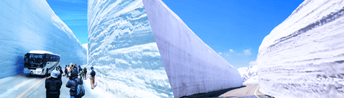 มาถึงที่เที่ยวไฮไลท์ที่น่าสนใจของ ทัวร์กำแพงหิมะ ญี่ปุ่น เส้นทาง Tateyama-Kurobe Alpine Route กันบ้าง ในช่วงที่เปิดให้บริการครบทุกเส้นทาง เราจะได้เต็มอิ่มกับทัศนียภาพที่สวยงามของเทือกเขาทาเตยามะตลอดระยะทาง 90 กิโลเมตร มาดูกันว่าไฮไลท์ที่ต้องไปชมมีอะไรบ้าง
