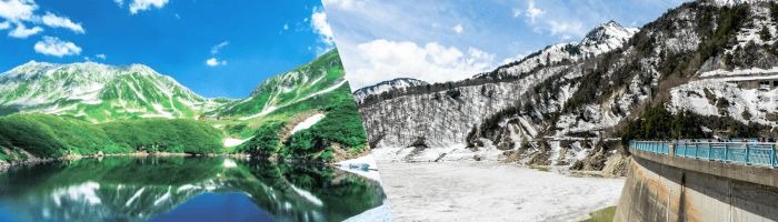 จุดต่อมาจากไดคับโบ ถ้านั่ง Kurobe Cable Car ลงมา เราจะพบกับ เขื่อนคุโรเบะ (Kurobe Dam) ซึ่งเป็นเขื่อนที่มีความสูงที่สุดในญี่ปุ่น เพราะมีความสูงถึง 186 เมตร! เขื่อนแห่งนี้เป็นแหล่งพลังงานสำคัญที่นำมาใช้พัฒนาประเทศญี่ปุ่นภายหลังสงครามโลกครั้งที่ 2 นอกจากจะเป็นเขื่อนที่มีความสำคัญกับประเทศญี่ปุ่นแล้ว วิวทิวทัศน์ตรงนี้ยังสวยงามจนบรรยายไม่ถูกเลยล่ะค่ะ
