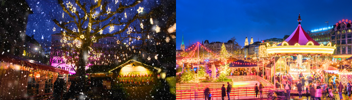 ซูริก เป็นเมืองที่ใหญ่ที่สุดในสวิตเซอร์แลนด์ ช่วงฤดูหนาวทั่วเมืองจะประดับประดาไปด้วยแสงไฟ ระยิบระยับ อบอวลไปด้วยบรรยากาศแห่งการเฉลิมฉลอง และมี ตลาดคริสต์มาส อยู่หลายแห่ง เช่น Christkindlimarkt ที่สถานีรถไฟกลางซูริก เป็นตลาดคริสต์มาสในร่มที่ใหญ่ที่สุดในยุโรป มีร้านค้าถึง 150 ร้าน และต้นคริสต์มาสสูง 50 ฟุต อีกจุดหนึ่งคือ Sechseläutenplatz ตั้งอยู่ใกล้กับโรงละครโอเปร่าซูริก มีร้านค้ากว่า 100 ร้าน จำหน่ายสินค้ามากมาย ทั้งของตกแต่งคริสต์มาส เครื่องประดับ เสื้อกันหนาว ของที่ระลึก รวมถึงของกินอร่อยๆ ช้อปกันให้เพลินไปเลย