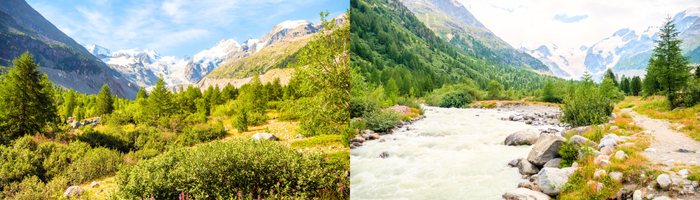 ใครอยากชมใบไม้เปลี่ยนสีสวยๆ ต้องมาที่ ธารน้ำแข็งมอเทอราท ในรัฐแองกาดีน (Engadin) เป็นหนึ่งในธารน้ำแข็งที่ใหญ่ที่สุดในเทือกเขาแอลป์ตะวันออก เดินทางง่าย มาเที่ยวได้ทุกวัย เพราะไม่ต้องปีนเขาให้เหนื่อย สามารถนั่งรถไฟชมวิว Bernina Express มาลงที่สถานี Morteratsch ได้เลย ในช่วงฤดูใบไม้ร่วง วิวจะสวยเป็นพิเศษ เพราะต้นสนที่อยู่รายล้อมอยู่รอบๆ จะพร้อมใจกันเปลี่ยนเป็นสีทองอร่าม แวะถ่ายรูปได้ตลอดทางเลย