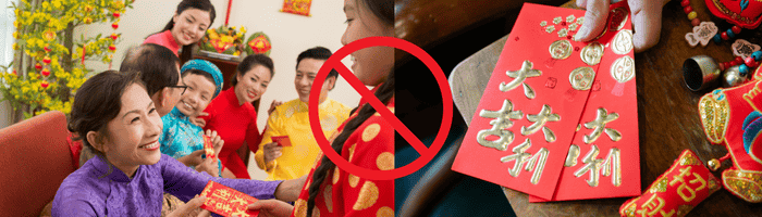 ห้ามเผลอให้ใครยืมเงินหรือพูดว่าไม่มีเงินในวันตรุษจีน เพราะเชื่อว่าการให้ยืมเงินจะทำให้ทั้งปีมีคนเข้ามาขอยืมเงินตลอด รวมไปถึงใครที่ติดเงินหรือเป็นหนี้ใครไว้ ก็ควรที่จะคืนเงินก่อนวันตรุษจีน เพราะการติดเงินใครในวันตรุษจีนเชื่อว่าคนนั้นก็จะมีหนี้สินตลอดปีไม่จบไม่สิ้น