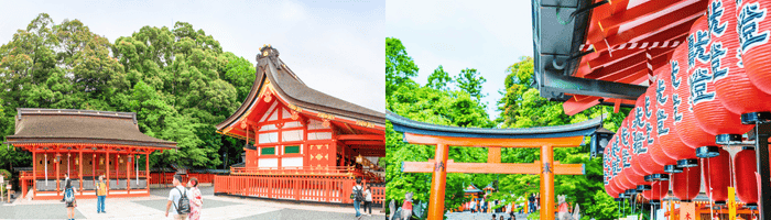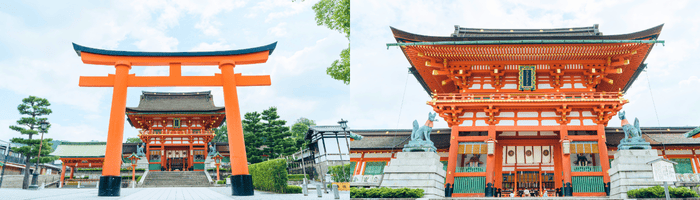 ฟุชิมิอินะริไทฉะสร้างขึ้นเพื่ออุทิศแก่ อินาริ เทพเจ้าแห่งการเพาะปลูกและการค้าที่รุ่งเรือง เป็นศาลเจ้าที่สำคัญที่สุดในบรรดาศาลเจ้าอินาริทั้งหมดในญี่ปุ่น แนวเสาประตูโทริอิสีส้มสดใสทอดยาวอย่างสุดตา ที่ทอดยาวขึ้นไปสู่ยอดเขาอินาริ ทำให้เกิดเป็นภาพอันน่าประทับใจและเป็นหนึ่งในภาพที่โด่งดังที่สุดของญี่ปุ่น
