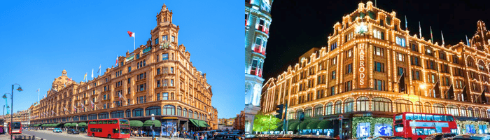 ต่อกันด้วยแหล่งช้อปสุดหรู ห้างสรรพสินค้าแฮร์รอดส์ จำหน่ายสินค้ากลุ่มลักซ์ชัวรี่ ก่อตั้งมาตั้งแต่ปี ค.ศ. 1834 โดยมีสาขามากมาย ใครหาของฝาก หรือว่ายังไม่รู้ว่า ไปอังกฤษซื้ออะไรดี ก็ไปเดินช้อปที่นี่กันได้เลย พบกับสินค้ามากมาย ไม่ว่าจะเป็น เสื้อผ้าเครื่องแต่งกายบุรุษและสตรี กระเป๋า ชาอังกฤษ น้ำหอม นาฬิกาข้อมือ เครื่องเพชรพลอยสวยๆ รวมถึงของที่ระลึกในสไตล์อังกฤษแท้ๆ อีกทั้งสินค้าของแบรนด์ Harrods ยังน่ารัก น่าซื้อเป็นของฝากสุดๆ บอกเลยว่าขาช้อปต้องมาโดน!!