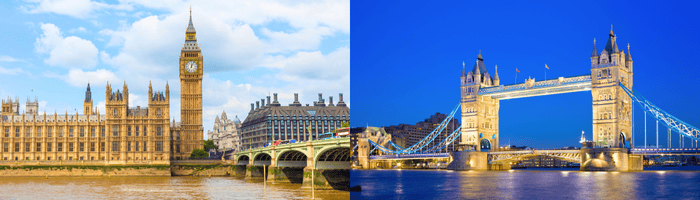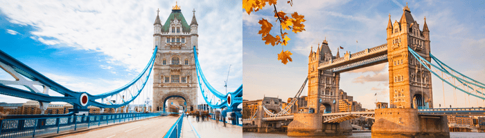 ปิดท้ายด้วย สะพานทาวเวอร์บริดจ์ เป็นอีกหนึ่งแลนด์มาร์กที่ไม่ควรพลาดเมื่อมาเยือนประเทศอังกฤษ สร้างแล้วเสร็จเมื่อปี ค.ศ. 1894 เพื่อใช้เป็นเส้นทางสำหรับการจราจรข้ามแม่น้ำเทมส์ มีความยาวประมาณ 240 เมตร หอคอยคู่สูง 61 เมตร โดยมีสถาปัตยกรรมแบบนีโอโกธิค ตัวสะพานมีการออกแบบให้สามารถยกเปิดได้ เพื่อให้เรือสามารถสัญจรไปมาได้ เป็นที่เที่ยวที่เหมาะแก่การมาเดินเล่น ถ่ายรูป ชมวิวแม่น้ำ หรือจะขึ้นไปชมวิวจากมุมสูงที่ด้านบนหอคอยก็ได้