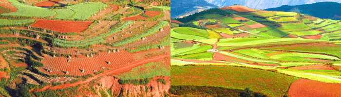 อีกหนึ่งที่เที่ยวน่าสนใจของ ประเทศจีน ในช่วงนี้ก็คือ ภูเขาเจ็ดสีตงชวน (Dongchuan Red Land) ตั้งอยู่ในเขตเมืองตงชวน ทางตอนเหนือของคุนหมิง แห่งมณฑลยูนนาน เป็นทิวทัศน์สุดแปลกของเนินเขาที่ดินเป็นสีแดงสด ตัดกับสีเหลืองของทุ่งข้าวสาลี และสีเขียวของต้นมันฝรั่งที่ชาวบ้านปลูกตามฤดูกาล กลายเป็นภูเขาที่สีสันสดใสสุดๆ จนได้รับสมยานามว่า “จานสีของพระเจ้า” จะมีจุดชมวิวที่สามารถมองเห็นวิวได้แบบ 360 องศารอบทิศทาง สวยงามสะดุดตากว่าที่ไหนๆ