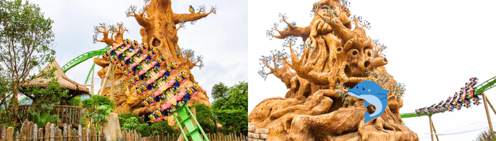 แค่ชื่อก็ให้ความรู้สึกถึงความสดชื่นในป่าอเมซอนแล้ว มีทั้งต้นไม้ ป่าไม้ สัตว์สายพันธุ์ต่างๆ จากป่าดิบชื้น พร้อมเสียง และเอฟเฟกต์ที่มีความสมจริง โซนนี้มีเครื่องเล่นแนะนำคือ Parrot Coaster เครื่องเล่นรถไฟเหาะนกแก้ว เหมาะสำหรับคนที่ชอบความเร็ว ท้าความเร่งทะลุนรก โดยเมื่อขึ้นไปนั่งบนเครื่องเล่นจะรู้สึกเหมือนกำลังบินด้วยความเร็วแบบ 360 องศา โดยขณะที่บินก็ได้ชื่นชมบรรยากาศของป่าไม้ ทะเลสาบ และหุบเขาที่สวยงาม และ Rainforest Tower หอคอยธีมดอกไม้ แบ่งเป็นความสูง 25 เมตร และ 40 เมตร สามารถมองเห็นวิวได้ไกลสุดลูกหูลูกตา มาพร้อมกับความตื่นเต้น และหวาดเสียว