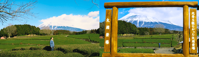 อีกหนึ่งพิกัดที่สวยงามไม่แพ้กัน ไร่ชาโอบุจิ ซะซะบะ (Obuchi Sasaba) เป็นไร่ชาที่มีชื่อเสียงมาก เพราะนอกจากไร่ชาสีเขียวขจีแล้ว เรายังได้เห็นภูเขาไฟฟูจิแบบไม่มีอะไรมาบดบังอีกด้วยค่ะ ใครได้มาช่วงเดือนพฤษภาคมก็จะได้เห็นใบชาสีเขียวชอุ่ม กับภูเขาไฟฟูจิที่ยังคงถูกปกคลุมไปด้วยหิมะขาวโพลน ตัดกับสีของท้องฟ้าสดใส ถือเป็นอีกนึงมุมถ่ายรูปฟูจิที่สวยสุดๆ ไปเลย