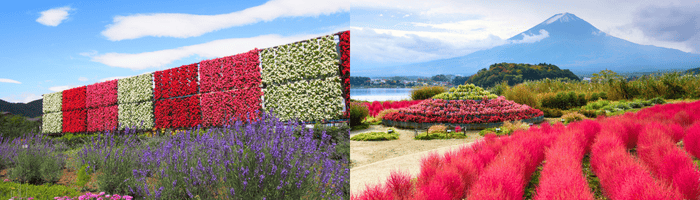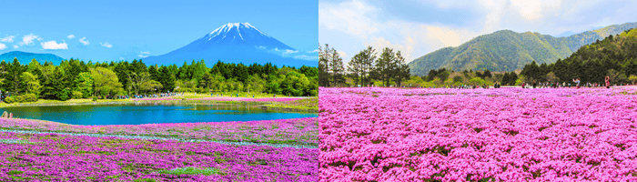 ในฤดูใบไม้ผลิประมาณกลางเดือนพฤษภาคม – ต้นเดือนมิถุนายน จะมี เทศกาลชมทุ่งดอกชิบะซากุระ ที่จัดขึ้น ณ รีสอร์ท Fuji Motosuko Resort ใกล้กับคาวากุจิโกะ ในช่วงนี้เราจะได้เห็นทุ่งดอกพิงค์มอสสีชมพูกว้างใหญ่ ที่มีภูเขาไฟฟูจิเป็นฉากหลัง สวยงามเหมือนกับภาพวาดเลยทีเดียว