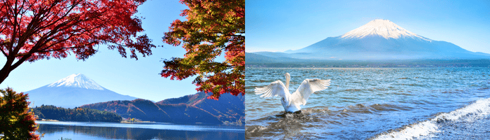 พาขยับเข้าไปชมวิวภูเขาไฟสวยๆ ใกล้ๆ กันที่ Fuji Five Lakes ทะเลสาบทั้ง 5 ของจังหวัดยามานาชิ ซึ่งเป็นทะเลสาบที่อยู่บริเวณรอบภูเขาไฟฟูจิ ประกอบไปด้วย ทะเลสาบคาวากุจิโกะ, ทะเลสาบไซโกะ , ยามานากะโกะ , ทะเลสาบโมโตซูโกะ และทะเลสาบโชจิโกะ โดยทะเลสาบที่เดินทางเข้าถึงง่ายและได้รับความนิยมที่สุด คือ ทะเลสาบคาวากุจิโกะ โดยเฉพาะช่วงซากุระบานและช่วงใบไม้เปลี่ยนสี บรรยากาศยิ่งสวยงามและโรแมนติกสุดๆ เลยค่ะ