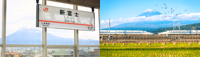 อีกหนึ่งจุดชมวิวที่นักท่องเที่ยวอาจจะเคยเห็นผ่านตาก็คือ สถานีชินฟูจิ (Shin-Fuji Station) เราจะได้เห็นวิวภูเขาไฟฟูจิคู่กับรถไฟชินคันเซนได้จากมุมนี้ โดยนักท่องเที่ยวสามารนั่งรถไฟชินคันเซ็นจากสถานีโทไคโด-ซังโย (Tokaido-Sanyo) มาลงสถานีชินฟูจิ (Shin Fuji) เพื่อมาถ่ายรูปสวยๆ กันได้เลยค่ะ