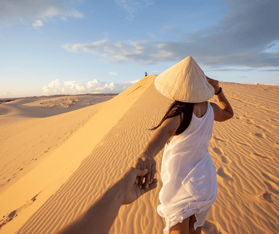 ไฮไลท์ของมุยเน่ก็คือเนินทราย (Sand Dunes) ที่ขึ้นชื่อว่าใหญ่เป็นอันดับต้นๆ ของเอเชียตะวันออกเฉียงใต้ เนินทรายเป็นเกราะป้องกันพายุและการกัดเซาะชายหาด และเป็นที่อยู่อาศัยของพันธุ์พืชและสัตว์ที่ใกล้สูญพันธุ์ ทำให้เกิดความหลากหลายทางธรรมชาติ เนินทรายที่มุยเน่มีทั้งหมด 18 เฉดสีด้วยกันค่ะ และเนินทรายที่เป็นที่นิยมของนักท่องเที่ยวที่สุดคือทะเลทรายขาว (White Sand Dunes) ที่กินพื้นที่กว้างใหญ่สุดลูกหูลูกตาและสวยงามมากเมื่อพระอาทิตย์ขึ้น และเนินทรายแดง (Red Sand Dunes) ที่ประกอบด้วยเนินเขาสีทองแดงที่เปล่งประกายเมื่อพระอาทิตย์ตกดิน