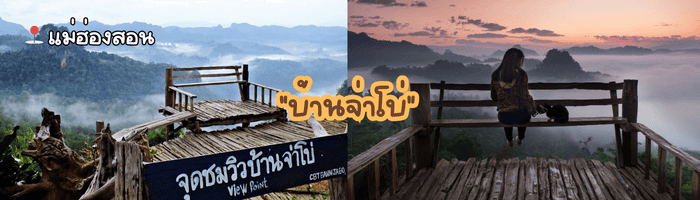 จุดเด่น: หมู่บ้านเล็ก ๆ บนภูเขาสูงที่มีวิวทะเลหมอกสุดอลังการ บ้านจ่าโบ่โดดเด่นด้วยก๋วยเตี๋ยวห้อยขา ร้านอาหารที่ตั้งอยู่ริมผา ให้คุณนั่งทานอาหารพร้อมชมวิวภูเขาและหมอกยามเช้า