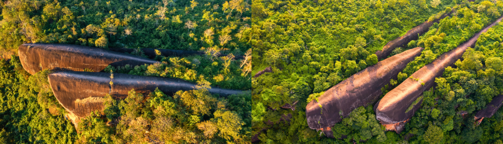 หินสามวาฬ จังหวัดบึงกาฬ เป็นแหล่งท่องเที่ยวธรรมชาติที่โดดเด่นด้วยโขดหินขนาดใหญ่สามก้อนเรียงตัวคล้ายครอบครัวปลาวาฬ ตั้งตระหง่านบนภูสิงห์ ท่ามกลางทิวทัศน์ภูเขาและแม่น้ำโขง จุดชมวิวพระอาทิตย์ขึ้นและทะเลหมอกยามเช้าที่นี่สวยงามไม่เหมือนใคร นักท่องเที่ยวยังสามารถเดินศึกษาธรรมชาติและสำรวจหินรูปร่างแปลกตารอบๆ ฟ้าสวยแทรเวลขอชวนคุณมาเก็บภาพความมหัศจรรย์ของธรรมชาติ และสัมผัสบรรยากาศสงบของหินสามวาฬในฤดูหนาวนี้